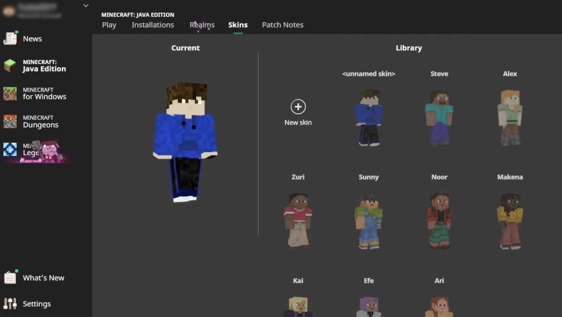Letâs start with the Java Edition. To change your characterâs skin, log into your account on the official Minecraft website or launch the game through the launcher. The interface differs slightly between the two, but in both cases, you'll see a "Skins" button. In the launcher, it's located at the top between the "Installations" and "Patch Notes" tabs. In this section, you can choose from nine preset skins or import your own if you have one.