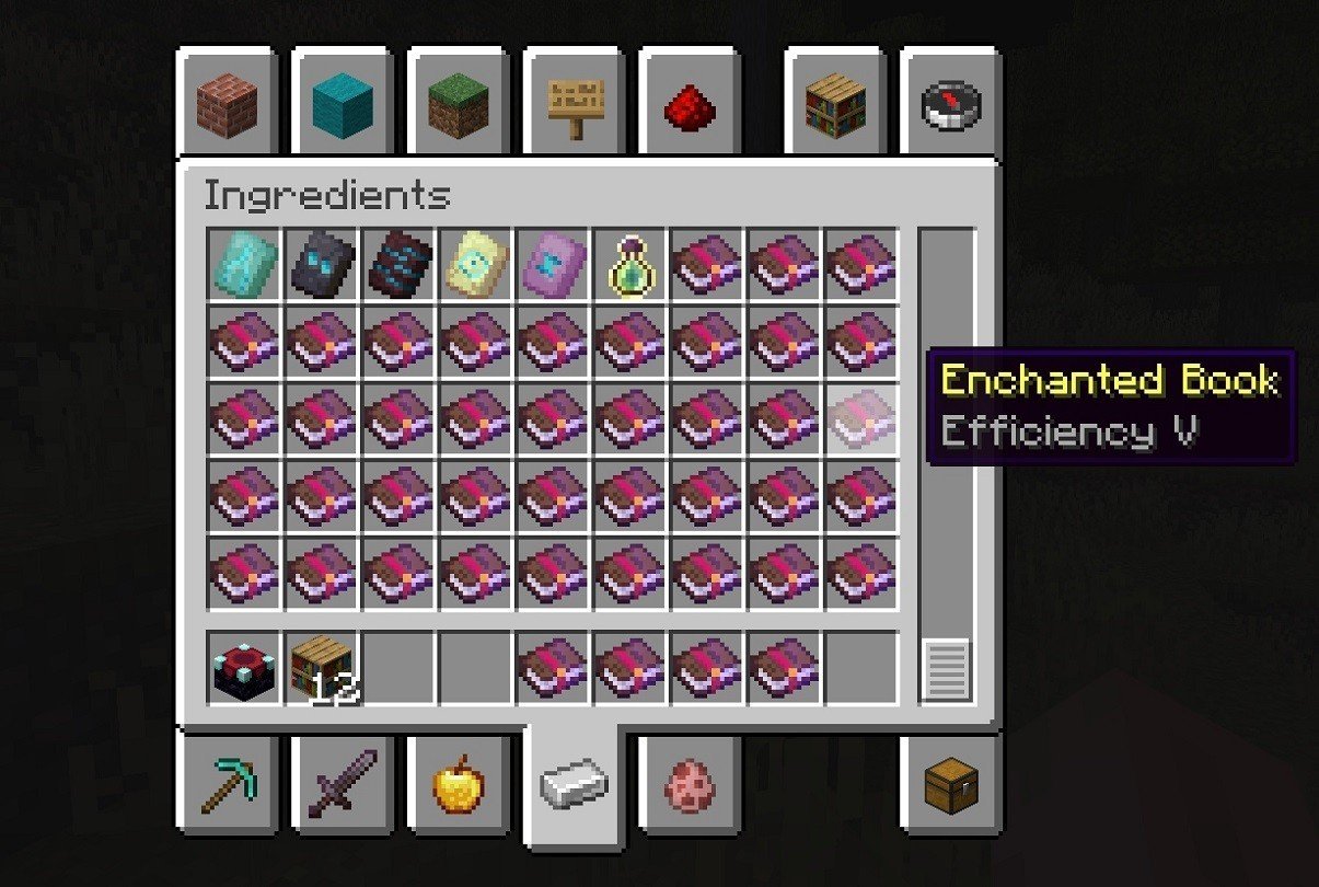 🔅 Efficiency — increases resource gathering speed. Each tool will break blocks faster, depending on its intended use.