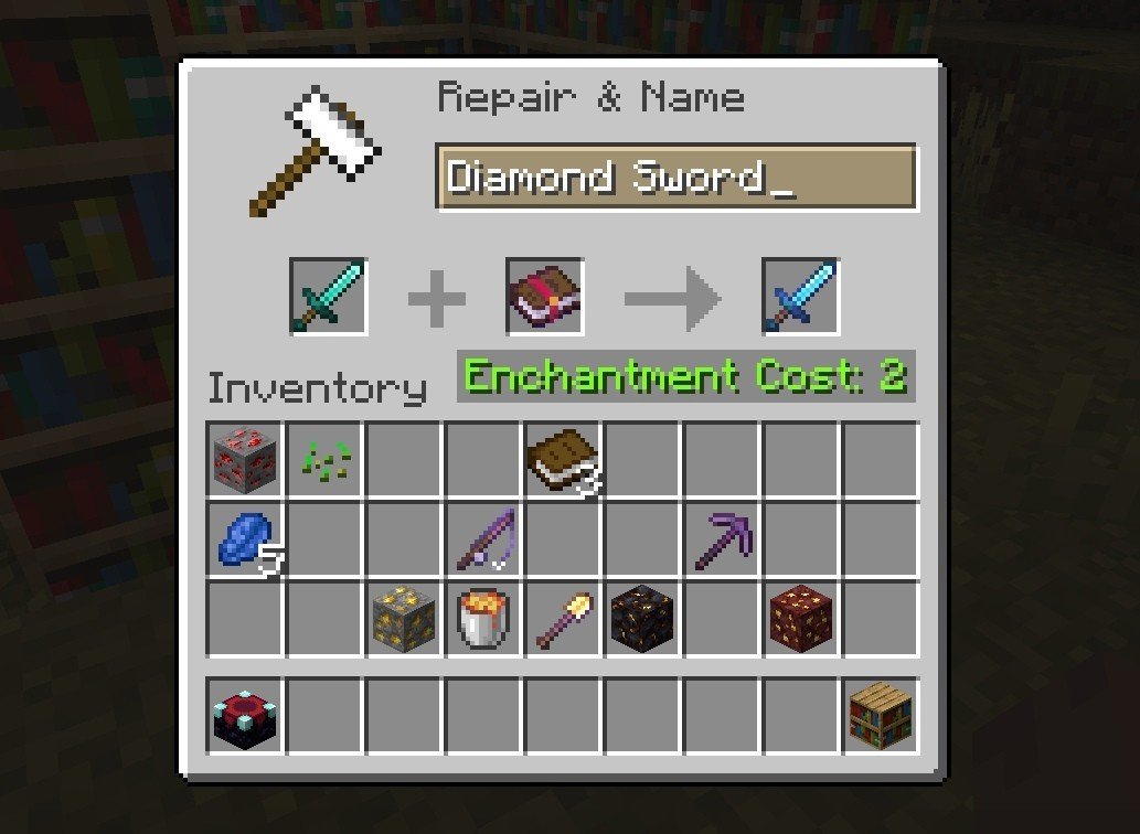 The third method also involves using an anvil and experience. The character can combine two identical items with different enchantments to create one item that carries the enchantments from both.