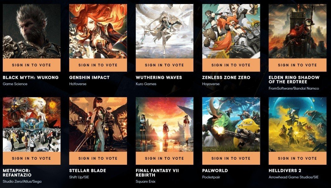 It will be interesting to see which five games make it to the final list, which will be announced in a few days. Will HoYoverse manage to make it into the top five? Will the debates around Shadow of the Erdtree eligibility for GOTY benefit or harm Elden Ring? The selection may seem large, but it's hard to say if this year has been particularly fruitful.